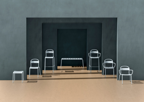Коллекция Stecca представляет собой расширенную линейку, отвечающую всем требованиям, как для общественных пространств, так и для жилых помещений, одинаково удобную как для внутреннего, так и для наружного применения. Ее дизайн основан на плавной форме ее классических изогнутых деревянных аналогов, которая оживает благодаря вставке алюминия.