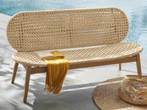 Плетеная скамья Tuvalu объединяет гармоничные эстетические формы под эгидой минимализма, поддерживая их эргономичными деталями. Скамейка полностью состоит из экологически чистых материалов и предлагает Вам пример нового поколения в свете современных дизайнерских решений. Детали ручного плетения из акриловой нити и деревянные ножки создают утонченное пространство для отдыха, приема гостей и принятия пищи. Благодаря высокому балансу материалов и долговечности, Tuvalu предоставляет Вам пространство Вашей мечты в течение четырех сезонов, которое совместимо как с визуальными, так и с атмосферными условиями.
