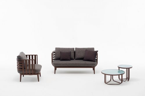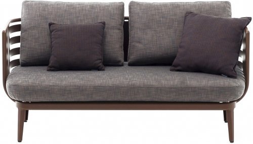 Алюминиевая конструкция дивана может иметь типичную дымчатую или ржавую окраску, а удобные подушки доступны с водоотводящими набивными материалами.