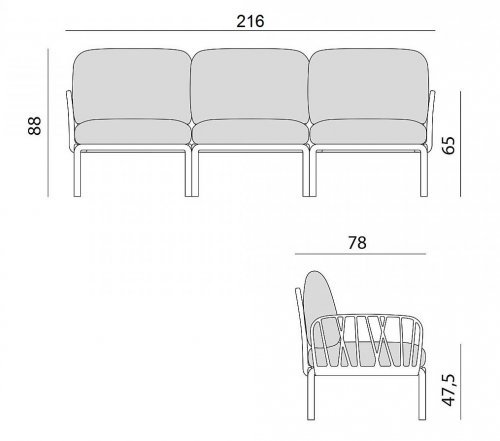 Модули Komodo выполнены из стеклопластика, имеют складные спинки и боковины, съемные подушки, благодаря чему можно составить диван любой длины, превратить отдельные модули в столики или пуфы.
