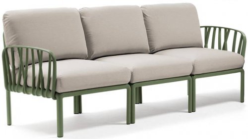 Модули Komodo выполнены из стеклопластика, имеют складные спинки и боковины, съемные подушки, благодаря чему можно составить диван любой длины, превратить отдельные модули в столики или пуфы.