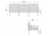 Модули Komodo выполнены из стеклопластика, имеют складные спинки и боковины, съемные подушки, благодаря чему можно составить диван любой длины, превратить отдельные модули в столики или пуфы.