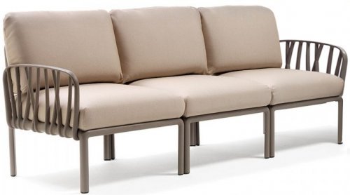 Модули Komodo выполнены из стеклопластика, имеют складные спинки и боковины, съемные подушки, благодаря чему можно составить диван любой длины, превратить отдельные модули в столики или пуфы.