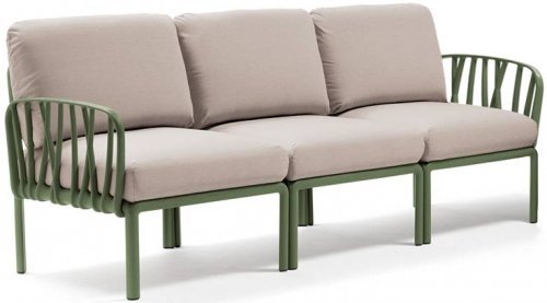 Модули Komodo выполнены из стеклопластика, имеют складные спинки и боковины, съемные подушки, благодаря чему можно составить диван любой длины, превратить отдельные модули в столики или пуфы.