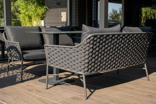 Устойчивый и надежный каркас из алюминия дивана Panama оплетен текстиленовым и резиновым канатом. Подушки из текстилена обеспечивают дополнительный комфорт. Модель можно разместить в зоне отдыха в помещении или на открытом воздухе.