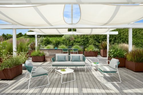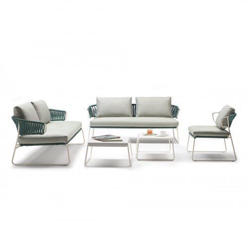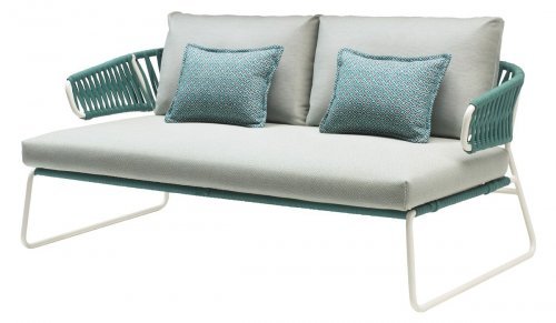 Элегантный уличный диван Lisa Sofa Filò обогащает и завершает коллекцию Lisa. Плетеная спинка из морского каната смягчается мягкими подушками: цветовая гамма играет на свежести лета и придает этому дивану индивидуальности и тепла.