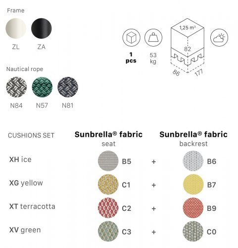 Материал сталь, морской канат, ткань sunbrella