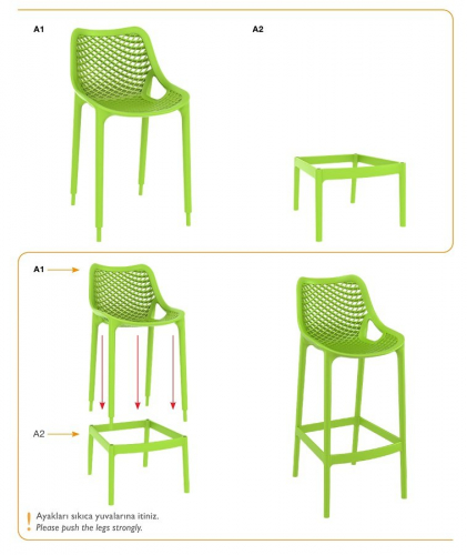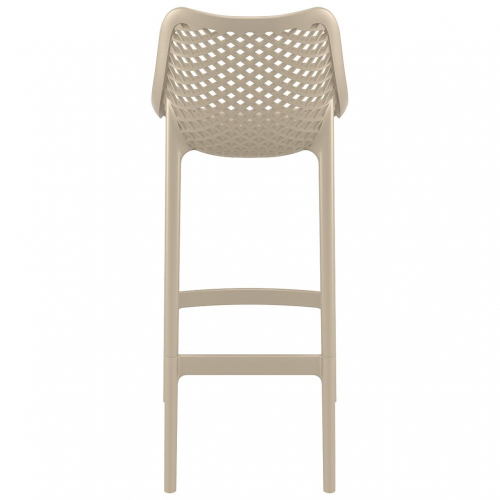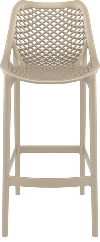 Барный стул Air с перфорированными сиденьем изготавливается из полипропилена, упрочненного стекловолокном, полученным с использованием новейшего поколения технологий формования пластмасс под давлением.