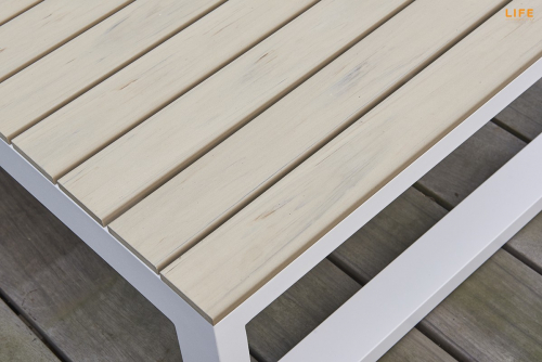 - Подлокотники кресел и дивана, столешница стола выполнены из ДПК POLYWOOD - натурального композитного материала на основе древесной муки с полимерным связующим. Он имеет естественный вид с характерной для древесины красивой природной текстурой, не подвержен влиянию температурных изменений и осадков, не гниет, не плесневеет, выдерживает сильные удары, легко обслуживается.