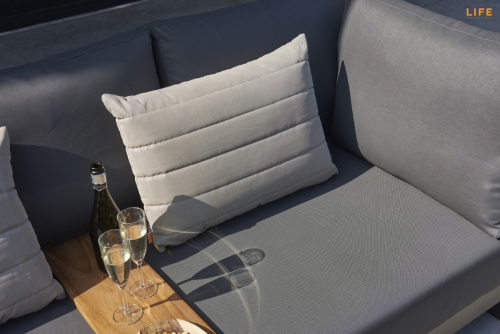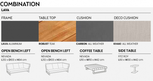 - Цветовое решение комплекта: каркас: лава, столешница: тик, подушки: карбон.
