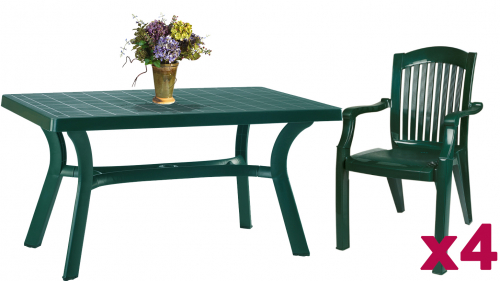 Комплект пластиковой мебели Roma Classic состоит из 4-х кресел Classic и стола Roma, которые станут отличным выбором для обстановки фуд-кортов, площадок возле бассейна, зоны отдыха в саду. Благодаря использованию высококачественных материалов, мебель долгое время не теряет своего привлекательного внешнего вида, даже несмотря на активную эксплуатацию. Благодаря отсутствию металлического каркаса и устойчивости к ультрафиолетовому воздействию, кресла и стол из пластика можно использовать в том числе и на открытых площадках.