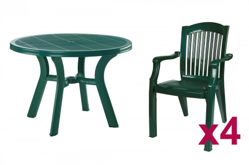 Комплект изготовлен из прочного погодостойкого пластика. Это отличный выбор для обстановки фуд-кортов, кафе, ресторанов и баров.