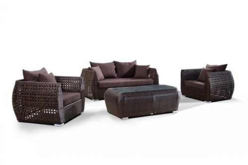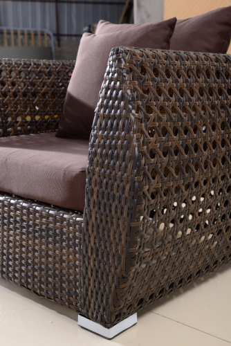 Мебель выполнена на алюминиевом каркасе, оплетенном искусственным ротангом.