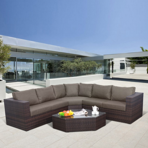 Комплект плетеной мебели для сада гармонично дополнит собой любую зону отдыха. Два больших дивана соединяются углом и рассчитаны минимум на 6 персон. Такое решение особенно понравится гостеприимным хозяевам или членам большой и дружной семьи.