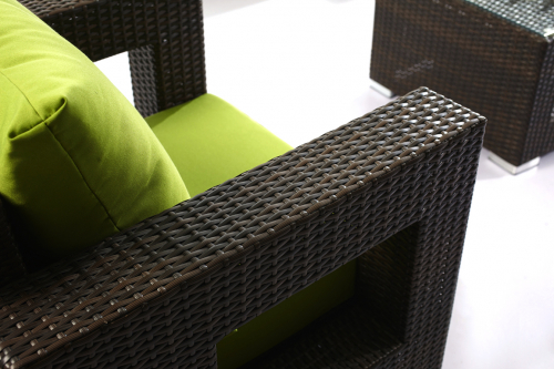 Набор мебели Loto выполнен в классической форме, с интересными подлокотниками. Идеально подойдет для летних веранд. Все подушки в чехлах на молниях, стекло на столике толщиной 7 мм.