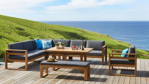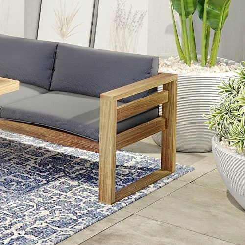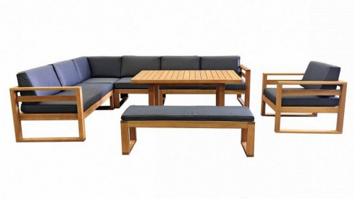 Прямые лаконичные линии мебели из коллекции Booka в сочетании теплого тона дерева и подушек в цвете темно-серый графит дают превосходные контрастные комплекты современной уличной мебели, которые по достоинству дополнят Вашу зону отдыха.