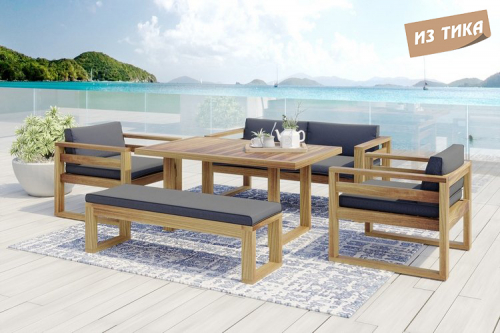 Прямые лаконичные линии мебели из коллекции Booka в сочетании теплого тона дерева и подушек в цвете темно-серый графит дают превосходные контрастные комплекты современной уличной мебели, которые по достоинству дополнят Вашу зону отдыха.