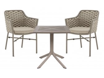 Комплект Clip 80 Torino состоит из квадратного стола и двух кресел.