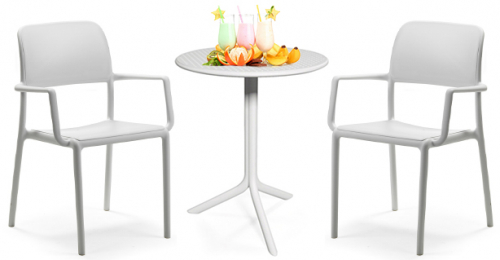 Комплект пластиковой мебели Step Riva состоит из двух кресел Riva и стола Step и украсит любую открытую площадку: балкон загородного дома, террасу кафе или ресторана, лаунж зону бассейна. Материалы не подвержены воздействию УФ-излучения, благодаря этому стол и кресла долго сохраняют свой первоначальный вид и не выцветают на солнце.