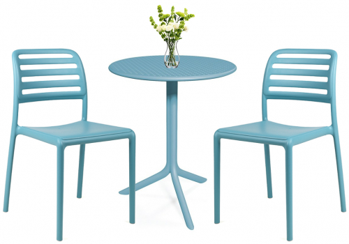 Комплект пластиковой мебели Step Costa Bistrot состоит из двух стульев Costa Bistrot и стола Step и украсит любую открытую площадку: балкон загородного дома, террасу кафе или ресторана, лаунж зону бассейна. Материалы не подвержены воздействию УФ-излучения, благодаря этому стол и стулья долго сохраняют свой первоначальный вид и не выцветают на солнце.