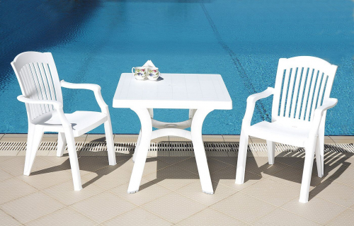 Комплект пластиковой мебели Viva Classic состоит из двух кресел Classic и стола Viva, он станет отличным выбором для обстановки фуд-кортов, площадок возле бассейна, зоны отдыха в саду. Благодаря использованию высококачественных материалов, мебель долгое время не теряет своего привлекательного внешнего вида, даже несмотря на активную эксплуатацию. Благодаря отсутствию металлического каркаса и устойчивости к ультрафиолетовому воздействию, комплект Viva Classic можно использовать в том числе и на открытых площадках.