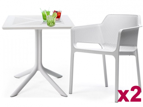 Комплект пластиковой мебели ClipX 70 Net состоит из двух кресел Net и стола ClipX 70 и украсит любую открытую площадку: балкон загородного дома, террасу кафе или ресторана, лаунж зону бассейна. Материалы не подвержены воздействию УФ-излучения, благодаря этому стол и стулья долго сохраняют свой первоначальный вид и не выцветают на солнце.