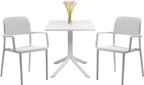 Комплект пластиковой мебели Clip 70 Bora состоит из двух кресел Bora и стола Clip 70 и украсит любую открытую площадку: балкон загородного дома, террасу кафе или ресторана, лаунж зону бассейна. Материалы не подвержены воздействию УФ-излучения, благодаря этому стол и кресла долго сохраняют свой первоначальный вид и не выцветают на солнце.