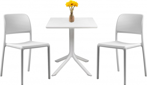 Комплект пластиковой мебели Clip 70 Bora Bistrot состоит из двух стульев Bora Bistrot и стола Clip 70 и украсит любую открытую площадку: балкон загородного дома, террасу кафе или ресторана, лаунж зону бассейна. Материалы не подвержены воздействию УФ-излучения, благодаря этому стол и кресла долго сохраняют свой первоначальный вид и не выцветают на солнце.