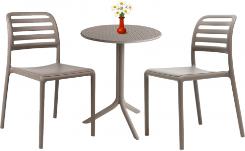 Комплект пластиковой мебели Step Costa Bistrot состоит из двух стульев Costa Bistrot и стола Step и украсит любую открытую площадку: балкон загородного дома, террасу кафе или ресторана, лаунж зону бассейна. Материалы не подвержены воздействию УФ-излучения, благодаря этому стол и кресла долго сохраняют свой первоначальный вид и не выцветают на солнце.