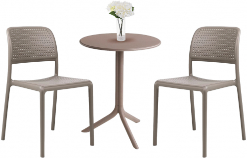 Комплект пластиковой мебели Spritz Bora Bistrot состоит из двух стульев Bora Bistrot и стола Spritz и украсит любую открытую площадку: балкон загородного дома, террасу кафе или ресторана, лаунж зону бассейна. Материалы не подвержены воздействию УФ-излучения, благодаря этому стол и кресла долго сохраняют свой первоначальный вид и не выцветают на солнце.
