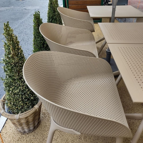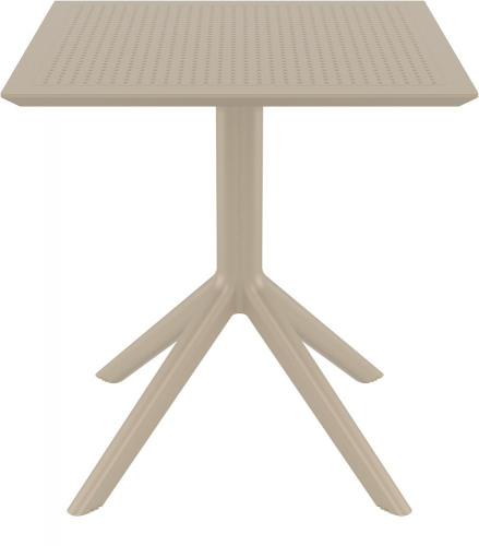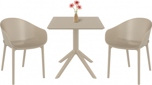Комплект Sky состоит из квадратного стола и двух кресел. Квадратный пластиковый стол Sky со столешницей из погодостойкого пластика и каркасом из металла. Легкое, как сам воздух, но при этом прочное кресло Sky изготавливается из полипропилена, упрочненного стекловолокном, полученным с использованием новейшего поколения технологий формования пластмасс под давлением.