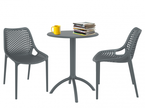 Комплект Octopus Air состоит из круглого стола и двух стульев. Круглый пластиковый стол Octopus со столешницей из погодостойкого пластика и каркасом из металла. Стул Air с перфорированными сиденьем изготавливается из полипропилена, упрочненного стекловолокном, полученным с использованием новейшего поколения технологий формования пластмасс под давлением.