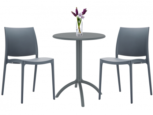 Комплект Octopus Maya состоит из круглого стола и двух стульев. Круглый пластиковый стол Octopus со столешницей из погодостойкого пластика и каркасом из металла. Пластиковый стул Maya выполнен согласно последнему слову инновационной техники формования под давлением. Такой процесс формования позволяет идеально контролировать дренаж канала и толщину стенки. При создании Maya дизайнеры разработали универсальную форму, которая подходит для различной обстановки - современной, классической, неформальной или элегантной.