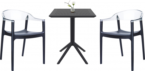 Комплект Sky Folding Carmen состоит из квадратного складного стола и двух кресел.
