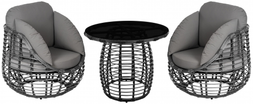 Цена на сайте указана за комплект с плетением в цвете Черный металлик и обивкой подушек из ткани Jamaica Grey. Для уточнения всех возможных вариантов материала и цвета данного изделия обращайтесь к нашим менеджерам.