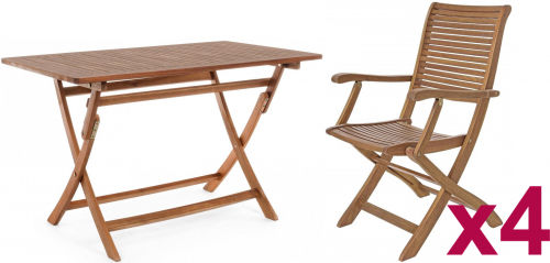 Комплект садовой мебели Noemi на 4 персоны - яркий пример идеального сочетания классического дизайна, стиля и качества. Он отлично подойдёт для ужина на свежем воздухе. Функциональный, универсальный и современный, это идеальный комплект мебели, позволяющий создать приятную зону отдыха в саду с уникальной атмосферой из натуральных природных материалов.