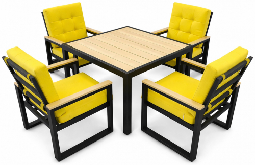 Ансамбль из стола и четырех кресел Quadro представляет собой идеально сбалансированное сочетание современной эстетики и практичности. Единство стиля достигается за счет общих материалов и лаконичного дизайна. Прочные цельносварные алюминиевые каркасы с порошковым покрытием определяют строгую геометрию и долговечность каждого предмета.