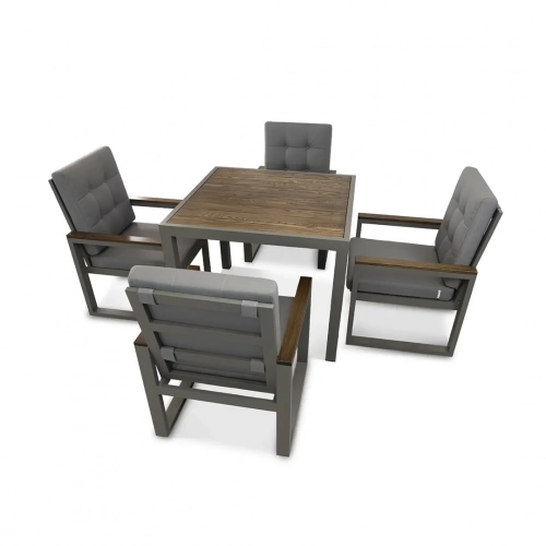 Ансамбль из стола и четырех кресел Quadro представляет собой идеально сбалансированное сочетание современной эстетики и практичности. Единство стиля достигается за счет общих материалов и лаконичного дизайна. Прочные цельносварные алюминиевые каркасы с порошковым покрытием определяют строгую геометрию и долговечность каждого предмета.