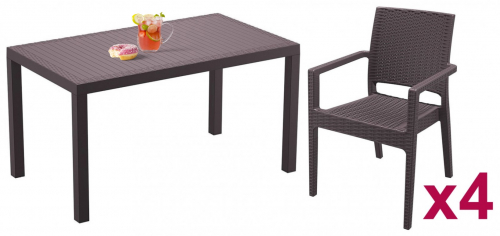 Комплект пластиковой мебели Orlando Ibiza состоит из 4-х кресел Ibiza и стола Orlando 140, которые станут отличным выбором для обстановки фуд-кортов, площадок возле бассейна, зоны отдыха в саду. Благодаря использованию высококачественных материалов и устойчивости к ультрафиолетовому воздействию, мебель долгое время не теряет своего привлекательного внешнего вида, даже несмотря на активную эксплуатацию в интерьерах и не открытых пространствах.