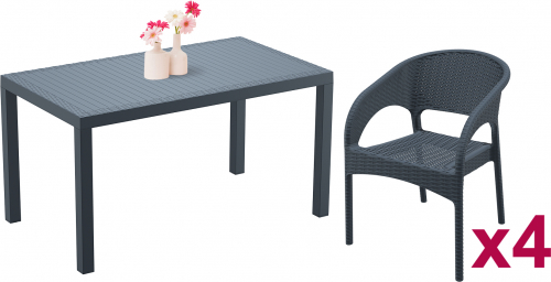 Комплект пластиковой мебели Orlando Panama состоит из 4-х кресел Panama и стола Orlando, которые станут отличным выбором для обстановки фуд-кортов, площадок возле бассейна, зоны отдыха в саду. Благодаря использованию высококачественных материалов мебель долгое время не теряет своего привлекательного внешнего вида, даже несмотря на активную эксплуатацию. Благодаря устойчивости к ультрафиолетовому воздействию, кресла и стол из пластика можно использовать в том числе и на открытых площадках.
