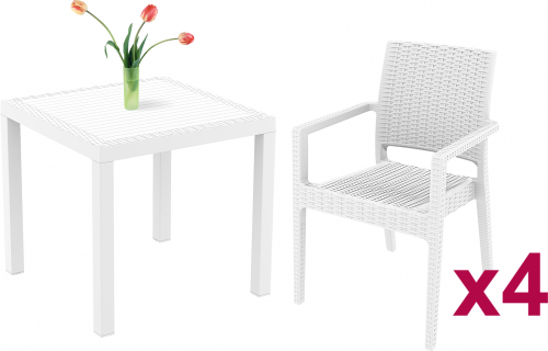 Комплект пластиковой мебели Orlando Ibiza состоит из 4-х кресел Ibiza и стола Orlando, которые станут отличным выбором для обстановки фуд-кортов, площадок возле бассейна, зоны отдыха в саду. Благодаря использованию высококачественных материалов мебель долгое время не теряет своего привлекательного внешнего вида, даже несмотря на активную эксплуатацию. Благодаря устойчивости к ультрафиолетовому воздействию, кресла и стол из пластика можно использовать в том числе и на открытых площадках.