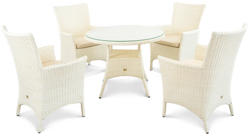 Комфорт и практичность продуманы до мелочей. Круглый стол со столешницей из закаленного стекла создает удобное пространство для четверых человек, оставаясь неприхотливым в уходе. Мягкие кресла с подушками в съемных чехлах из износостойкой ткани обеспечивают максимальное удобство, а возможность быстрой очистки делает комплект идеальным для мест с высокой проходимостью. Набор Kipr - это идеальное решение, которое с равным успехом дополнит частную террасу или патио, а также станет выигрышным выбором для ресторанов, отелей и летних веранд кафе, безупречно служа в течение многих сезонов.