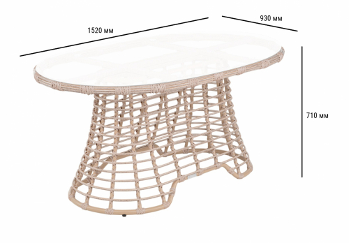 Все предметы выполнены из долговечных материалов: каркасы из алюминия с антикоррозийной защитой, устойчивое к ультрафиолету плетение из искусственного ротанга и практичное закаленное стекло столешницы. Комплект рассчитан на круглогодичное использование под навесом, не требует сложного ухода и станет изысканным украшением вашей террасы, патио или заднего двора.