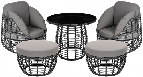 Цена на сайте указана за комплект с плетением в цвете Черный металлик и обивкой подушек из ткани Jamaica Grey. Для уточнения всех возможных вариантов материала и цвета данного изделия обращайтесь к нашим менеджерам.