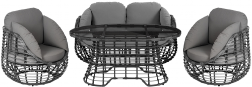 Цена на сайте указана за комплект с плетением в цвете Черный металлик и обивкой подушек из ткани Jamaica Grey. Для уточнения всех возможных вариантов материала и цвета данного изделия обращайтесь к нашим менеджерам.