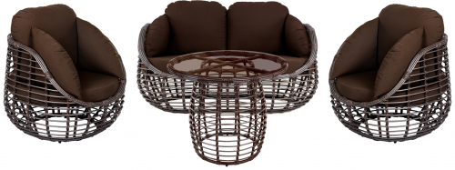 Цена на сайте указана за комплект с плетением в цвете Шоколад металлик и обивкой подушек из ткани Jamaica Brown. Для уточнения всех возможных вариантов материала и цвета данного изделия обращайтесь к нашим менеджерам.