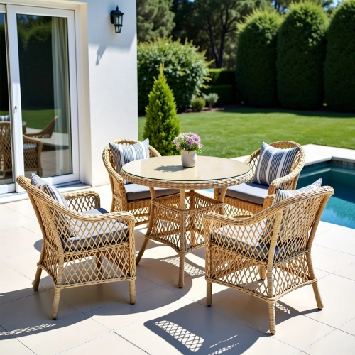 Комплект садовой мебели Nova создан для тех, кто ценит безупречный стиль, высочайший комфорт и практичность. Этот ансамбль, объединяющий четыре кресла и элегантный обеденный стол, формирует идеальное пространство для отдыха и приёма гостей на открытом воздухе. Каждый элемент набора воплощает в себе единство дизайна и инженерной мысли: прочный цельносварной каркас из алюминия с порошковым покрытием гарантирует устойчивость к коррозии и деформации, а изящное декоративное плетение из искусственного ротанга не боится влаги, ультрафиолета и перепадов температур, сохраняя безупречный вид на долгие годы.