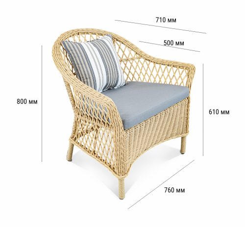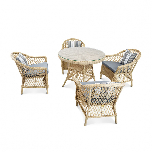 Цена на сайте указана за комплект с плетением в цвете Индийское дерево и обивкой подушек из ткани Mossle 990. Для уточнения всех возможных вариантов материала и цвета данного изделия обращайтесь к нашим менеджерам.