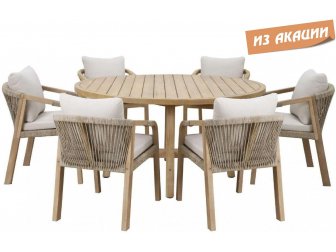 Изготовленная из массива акации, полученного экологически безопасным способом, в сочетании с ручным плетением из роупа, мебель идеально подходит для придания нотки тренда и индивидуальности любому пространству, как в помещении, так и на открытом воздухе. Кресла принимают Вас в своих просторных размерах и предлагают правильный баланс между поддержкой и мягкостью, приглашая принять удобное и расслабленное положение.