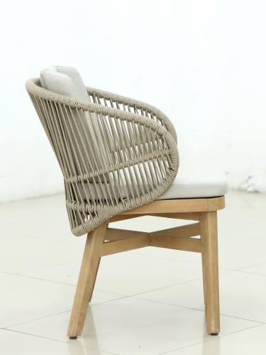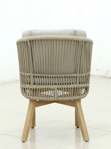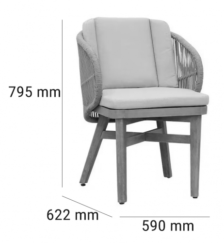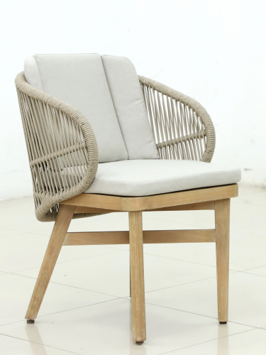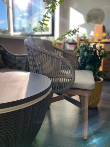 Эксклюзивная коллекция Mali приглашает вас окунуться в стиль и безмятежность на открытом воздухе. Обеденные кресла, вдохновленные побережьем, имеют прочный алюминиевый каркас, оплетенный роупом, очаровательные ножки из эвкалипта и мягкие, удобные подушки, предназначенные для круглогодичного отдыха на открытом воздухе и развлечений. Большой обеденный стол, рассчитанный на 6 персон, выполнен из эвкалипта, круглая столешница - из искусственного камня Travertine.